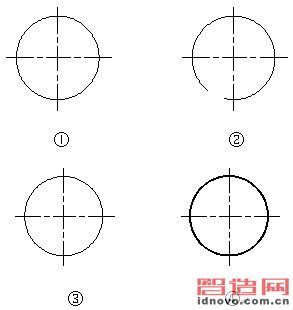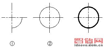 (1)0素線細(xì)線圓變?yōu)?.5mm寬線圓的技巧之一:凡利用上述方法繪制的0素線細(xì)線圓,利用Break(或Br)命令將圓斷開后,再利用修改命令Pedit(或Pe)將斷開后的圓封閉(或輸C后回車),再在命令行輸W后回車,在命令行輸0.5后回車,即可實(shí)現(xiàn),見圖1。