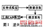 實體逆向工程的需求主要有兩方面:一方面,作為研究對象,產品實物是面向消費市場最廣、最多的一類設計成果.也是最容易獲得的研究對象;另一方面,在產品開發和制造過程中,雖已廣泛使用了計算機幾何造型技術,但是仍有許多產品,由于種種原因,最初并不是由計算機輔助設計模型描述的,設計和制造者面對的是實物樣件。