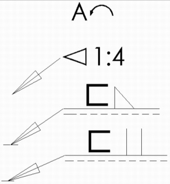 有兩種基本的方法可以實現(xiàn)自定義符號。首先,可以使用直線、圓、圓弧、三角繪圖命令來繪制所需的符號,例如:斜度符號“∠”為三端點為(0,0)(1,1)(1,0)的兩交角直線,命令為A,LINE .0,.0,1.,1.和A,LINE .0,.0,1.,.0。不過很遺憾,因為使用這些命令所繪的符號線型均為細線,只能滿足部分特殊要求,您如果不嫌麻煩,可以將一條粗線用多條間距很近的細線代替,也能實現(xiàn)粗線的效果。其次,可以使用TEXT命令實現(xiàn)各種有線型要求的符號。基本原理為首先使用Windows自帶的True Type 造字程序(圖1所示)繪制自定義符號,粗線筆畫要粗,保存后退出。隨后依次選擇“附件→系統(tǒng)工具→字符映射表(圖2所示)”就可以看見你剛才繪制的符號,選中它后復制,將其粘貼到符號庫定義文件中的自定義符號的TEXT命令的字符位置,完成后保存為Gtol.sym。再次啟動SolidWorks,你自定義的符號就會出現(xiàn)在備選框中(圖3所示)。選自定義符號插入工程圖后打印,直到滿意為止。以后你就能自由使用你定義的符號了。圖4是筆者自定義的幾個符號插入工程圖的效果。
