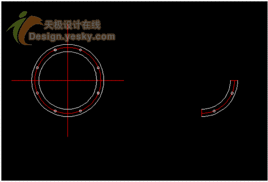 畫(huà)出法蘭,把法蘭旋轉(zhuǎn)合適的角度,避開(kāi)法蘭上的螺絲孔(如圖)。