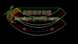 用修剪工具對(duì)旋轉(zhuǎn)好的法蘭進(jìn)行修剪,只留下四分之一的部分(如圖)。