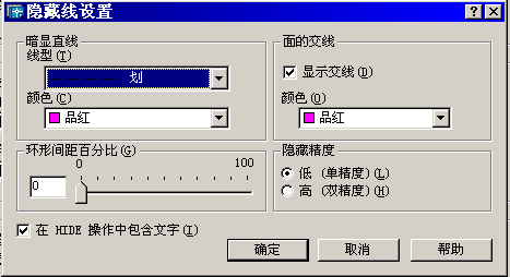 圖2 圖3為按圖2"暗顯直線"設(shè)置,執(zhí)行消隱(hide)命令后生成的圖形。