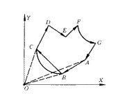 首先遍歷雙鏈表,找出離X坐標(biāo)軸或Y坐標(biāo)軸最近的端點(diǎn)為加工起點(diǎn), 即D=MIN(|x-x0|,|y-y0|)。令此點(diǎn)為B點(diǎn),其在鏈表中前后兩端點(diǎn)分別為A點(diǎn)和C點(diǎn)。可推知,連接B點(diǎn)兩矢量AB、BC的連接情況將唯一確定原圖形的方向。