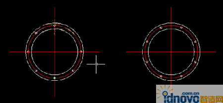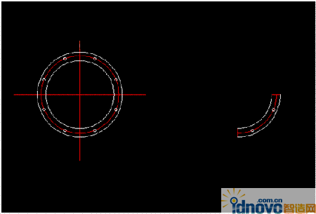 畫出法蘭,把法蘭旋轉合適的角度,避開法蘭上的螺絲孔(如圖)。