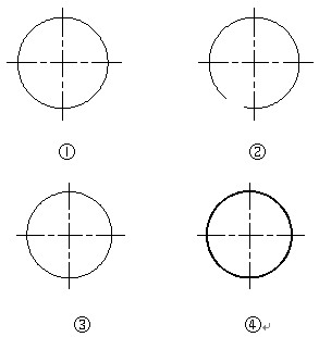 (1)0素線細(xì)線圓變?yōu)?.5mm寬線圓的技巧之一:凡利用上述方法繪制的0素線細(xì)線圓,利用Break(或Br)命令將圓斷開后,再利用修改命令Pedit(或Pe)將斷開后的圓封閉(或輸C后回車),再在命令行輸W后回車,在命令行輸0.5后回車,即可實(shí)現(xiàn),見圖1。