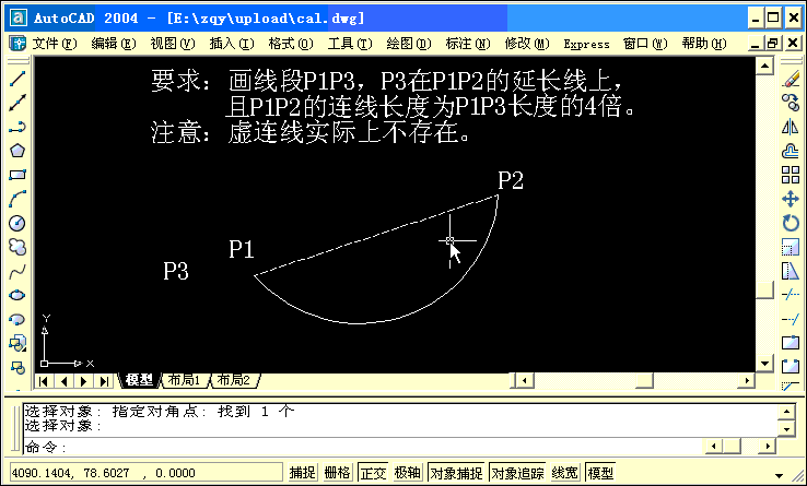 ‘cal >> 表達(dá)式: pld(P1,P2,distance) 表示在P1P2兩點(diǎn)的直線上距離P1為distance的點(diǎn)。