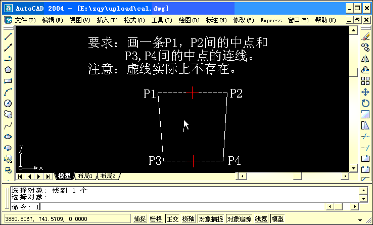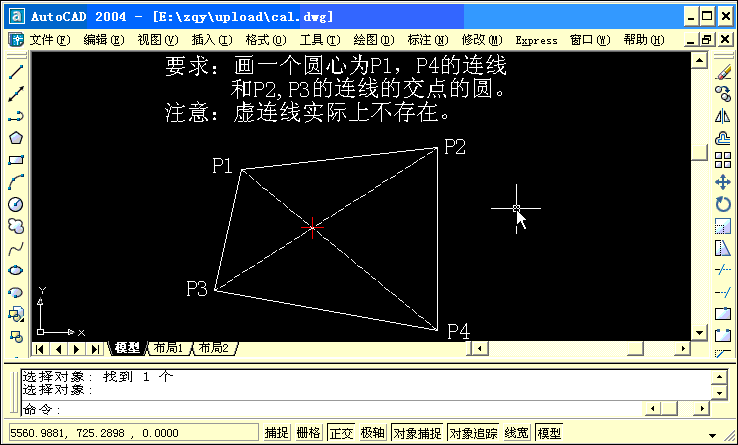 'cal >> 表達(dá)式: ill(P1,P2,P3,P4)返回P1P2與P3P4的交點(diǎn).