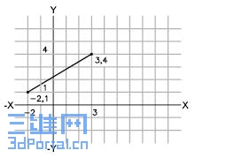 下例所繪制的一條線段從 X 值為 -2 Y 值為 1 的地方開始,到端點 3,4 結束。 在工具欄提示中輸入以下信息: