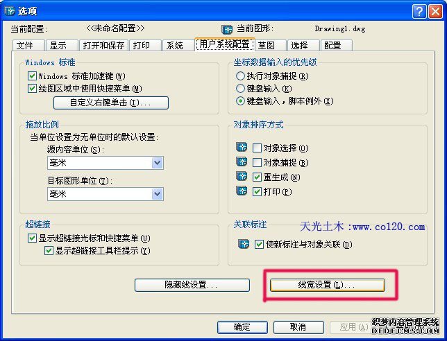 你可以找到CAD軟件中的工具菜單—選項—用戶系統(tǒng)配置—線寬設(shè)置