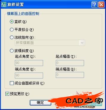 3:繪圖-建模-放樣,選擇“僅橫截面”,再選擇直紋(07以下版本也可以用拉伸角度或者剖切的方式建立實體)