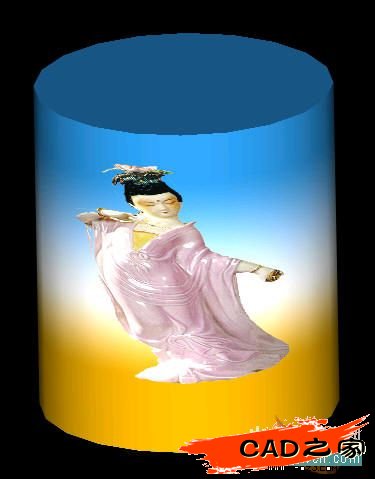 只在圓柱體的體面貼圖,方法之三:可將作為貼圖用的圖片予以再編輯,增加上下、左右的空白或彩色面,然后賦給柱體或筒體。