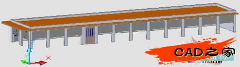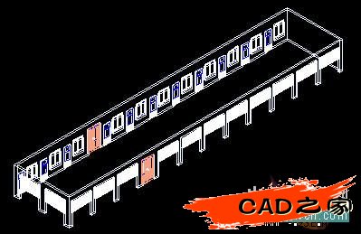 選擇自備圖庫的三維圖塊予以插入,比較方便。(沒有門窗三維塊的,可以在網上收集,當然也可自制。)其插入操作從略。經插入后的三維圖如圖8所示: