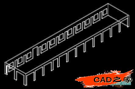 擊“差集”命令(_subtract),選擇外墻體后回車,接著選擇所有門窗洞口塊予以差集,這就生成了經過布爾差集后的底層三維模型了。這時,擊“西南等軸測圖”按鈕,就可看出底層墻的立體效果了。如圖7所示: