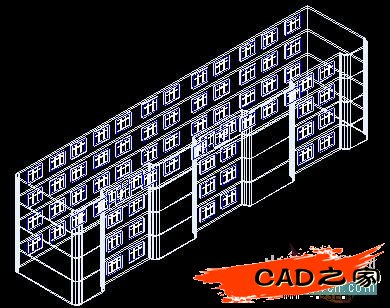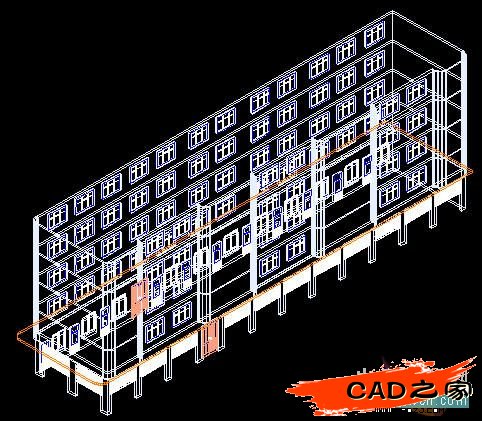 我繪制時測定的基點(diǎn)的差值是-567,10692,0,于是打@-567,10692,0)回車后就生成如(圖14)的多層建筑的立體圖了。