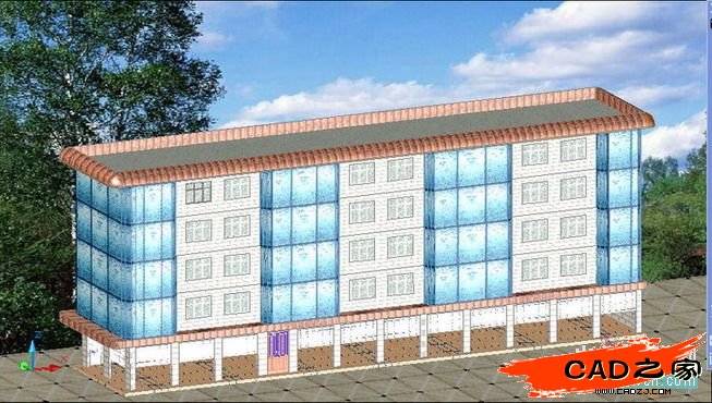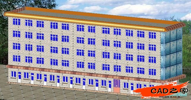 以上是談的實(shí)體建模的方法,這幢樓房用此方法建模不僅快速,而且文件小,含賦材質(zhì)渲染的dwg文件僅611KB,這是很小的了。當(dāng)然,還可“以線建模”,這就看各人的喜愛了。