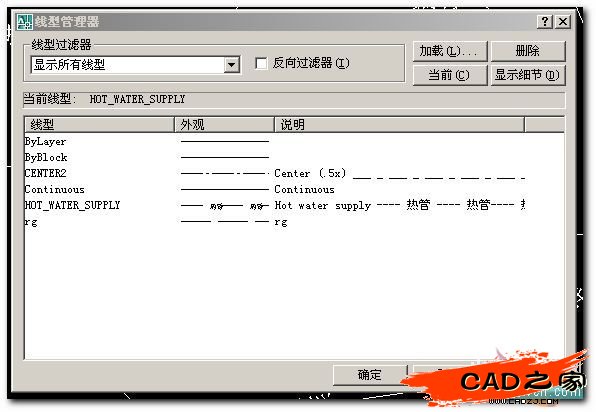 嘿嘿,今天看見一個問題貼,尋求如何自定義線型,自己操作了許久,都不太順,后來轉換一想,即然CAD有自帶線型,為什么不利用它原來的文件,加以編改下(不動其它參數,照葫蘆畫瓢),不又是一個新線型!沒想到,一試就成,嘿嘿,現在拿出來分享下!~