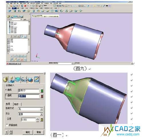 十、使用U/V曲面功能 進行瓶頸與瓶身的連接處的曲面造型,如圖十所示: