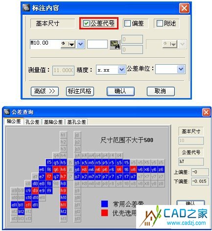 在標注對話框選中公差代號時會彈出公差查詢如下圖