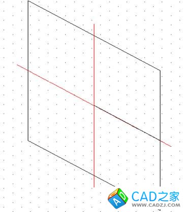 接下來繪制萬向聯軸節-長方體;將當前圖層設置為“粗實線”,利用line命令繪制基準長方體,該長方體側面是30的正方形,長為50,以中心線交點為繪制線段的起點,利用極軸跟蹤功能,點取相對極坐標為15〈330的點作為線段的另一端點;重復line命令,依次點取相對極坐標為:15〈270、30〈150、30〈90、30〈330、30〈270,完成左平面的繪制(圖四)。