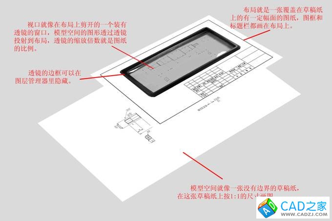 我的空間里已經有一篇題為《AutoCAD里模型和布局的關系》的文章,這里試圖用圖解的方法通俗地講述這個問題。