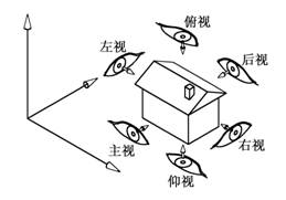 在改變視圖方向之前或者是創(chuàng)建新的用戶坐標(biāo)系時的視圖是俯視視圖,此時假想從屏幕背后向前看到的是仰視視圖,其余視圖方向與俯視的關(guān)系如圖示。