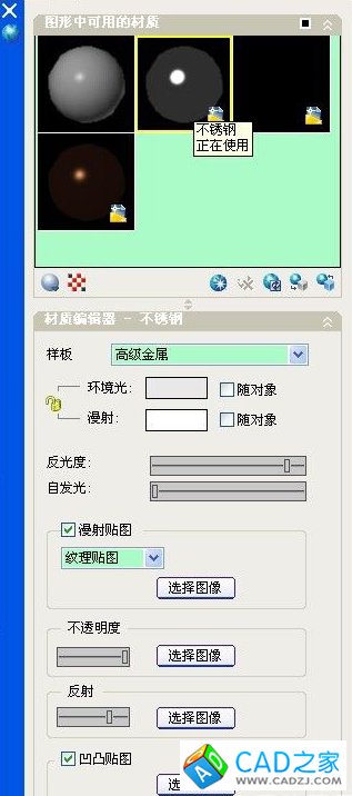 樣板:選“高級金屬”——具有更多選項的材質,包括可以用于創建特殊效果的特性(例如模擬反射)。