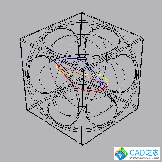 我用的圖形很簡單,一個正四方體,中心畫個球體差集后倒圓角。中心放一個球體(借用我以前畫的“小時候玩的玻璃球”)。底部畫個面域做底板。(圖01)