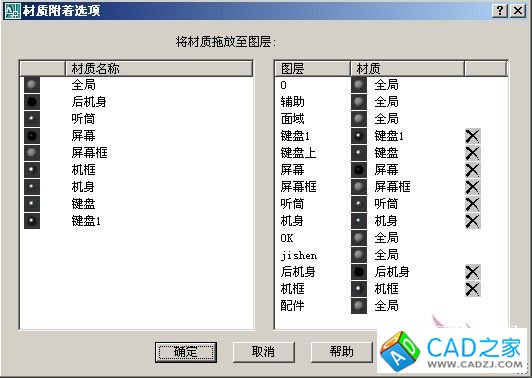 Step18.材質附著命令materialattach 將建立好的材質附著到相應圖層即可。