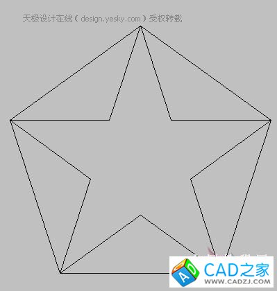 一、CAD中利用五邊形角點(diǎn)連線的方式繪制五角形平面,修建后將五角星平面做成免域。