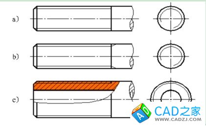 在cad螺紋畫法中,外螺紋,螺紋牙頂線用粗實線表現,螺紋牙底線用細實線表現,螺紋的收尾線用細實線表現。