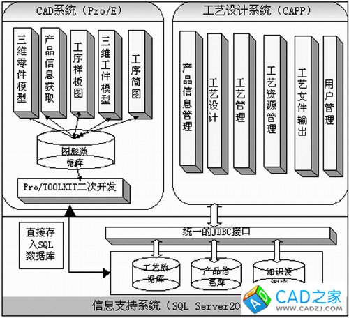 圖4 CAD/CAPP集成系統總體框架