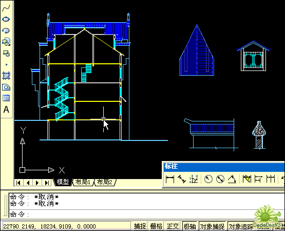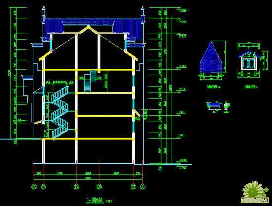 以d100為當(dāng)前樣式,標(biāo)注1-1剖面圖;以dim50標(biāo)注老虎窗;以dim20標(biāo)注大樣。完成之后,不同比例的圖形上的尺寸對(duì)象“大小”是一樣的。