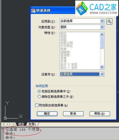 可以利用右鍵菜單中的快速選擇,或【工具】中找到【快速選擇】。利用這個功能我們可以對整個圖形或是選定的某一特定區域進行范圍的快速查找。可以對直線、圓弧、標注、圖塊、圖案填充、屬性定義進行過濾選擇。單擊確定后就會在命令欄窗口中顯示已選定的對象。