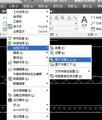 對于這種情況可以首先使用"Shift+空格"切換重疊在一起的線條選擇,選擇到了要凸顯的線條后單擊【工具】-【繪圖次序】選擇“前置”或“置于對象之上”