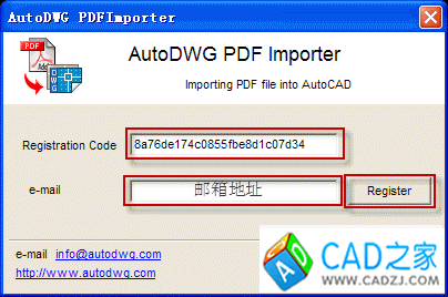 2、按下圖所示,輸入注冊碼和自己郵箱地址,最后點【Register】即可注冊成功