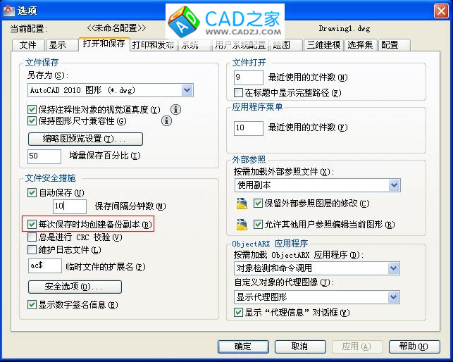 如何控制CAD中備份文件的產生與否