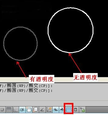 要想顯示對象的透明度效果,在特性里調整透明度之后,還需要將狀態欄里的“顯示/隱藏透明度”打開。以下是圖標位置,以及有無透明度的圖形對比。