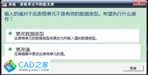 在CAD表格中輸入文字提示類型錯誤怎么辦