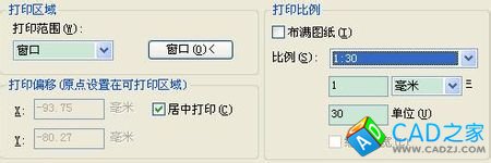 4、打印設(shè)置:使用窗口打印(不用我細(xì)說(shuō)了吧),比例調(diào)好1:30,最好鉤起居中打印;