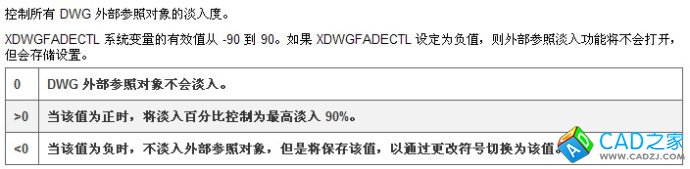 如果XDWGFADECTL的值小于0,相當于也是完全亮顯。