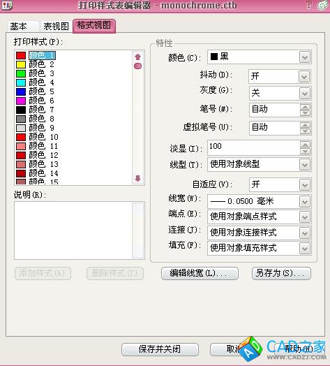 在左側的打印樣式中選擇你所要打印物體的顏色,在右側的特性中的“顏色”中改成你所想要的顏色就行了。