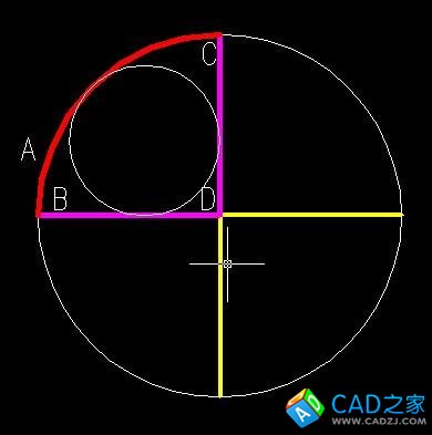 三點分別選擇(見圖3)A弧(紅色)、BD、CD(紫色)上的任意一點,即畫出一個小圓。重復此步驟分別畫出其它三個圓(或以相互垂直的輔助線為軸做鏡像畫出其它三圓)。