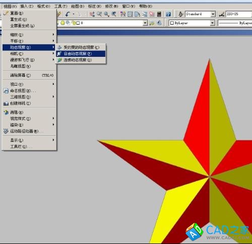 10、把五星各角左半部分設置為紅色右半部分設置為黃色,按圖十選擇視覺樣式為“真實”