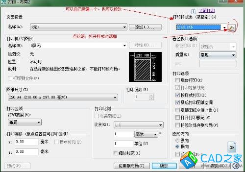 然后按CTRL+P,打開打印對話框,在打印樣式里,新建一個打印樣式,也選擇其中一個進行修改。如下圖