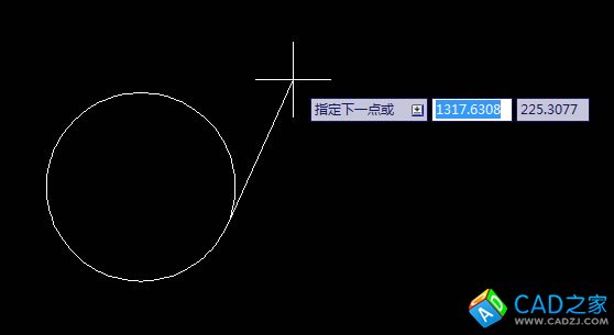 第三步:畫直線,指定第一點在圓上,這時直線的第一個端點可以在圓上任意位置移動。