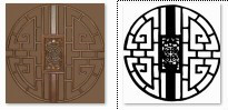 貼在我們剛做好的面片上,這是,你會發現木雕已經吻合的貼在了面片上,鏤空的地方剛好是孔洞……