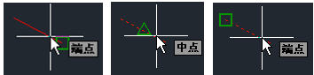 我們可以看到光標位置不變,通過按TAB鍵就可以捕捉到直線上所有滿足條件的特征點。當然,單純一條直線端點、中點的捕捉利用移動光標就很容易解決,完全不用取按TAB鍵。