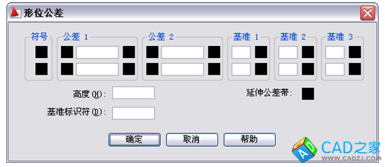利用AutoCAD 2012,用戶可以方便地為圖形標注形位公差。用于標注形位公差的命令是TOLERANCE,利用“標注”工具欄上的公差按鈕或“標注”|“公差”命令可啟動該命令。執行TOLERANCE命令,AutoCAD彈出后面的圖所示的“形位公差”對話框。