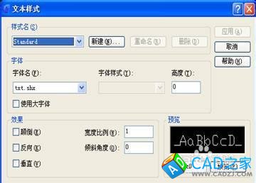 文字樣式中我們可以看到,鉤選大字體后,默認的兩欄分別為"txt.shx"和"gbcbig.shx",它們分別是用來控制單字節(數字和字母)和雙字節(漢字,日語平假名或韓文字母)的。