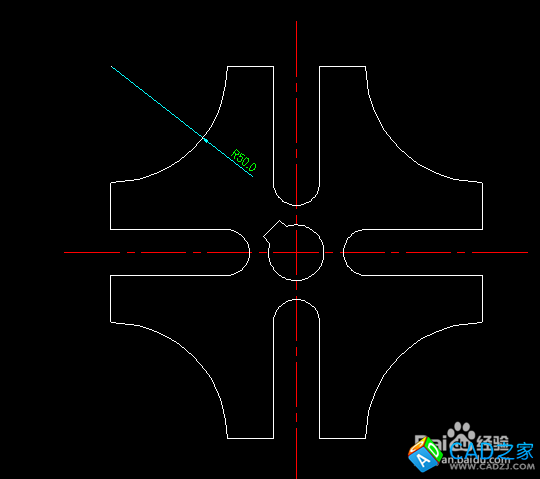 按照如圖所示把二二端點(diǎn)用50mm的圓弧連接起來。就得到了最終的槽輪平面圖了。